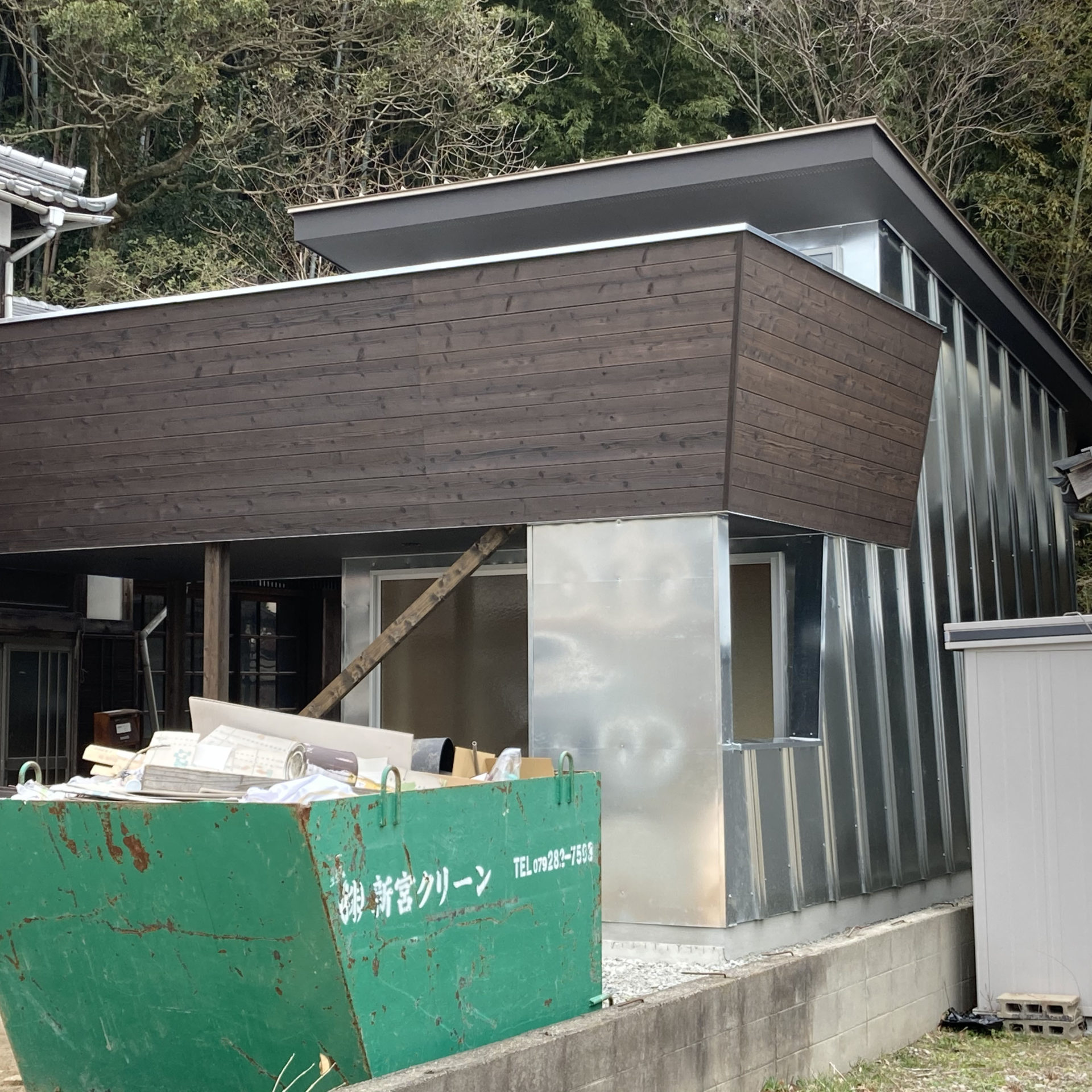 敷地に現存する前庭、井戸、土蔵、そして南西部に広がる川沿いの雄大な眺め、これらと関連するように建物はのびていくリビングの大窓からは波賀の山々を借景に、いつまでも光が内部を照らす。